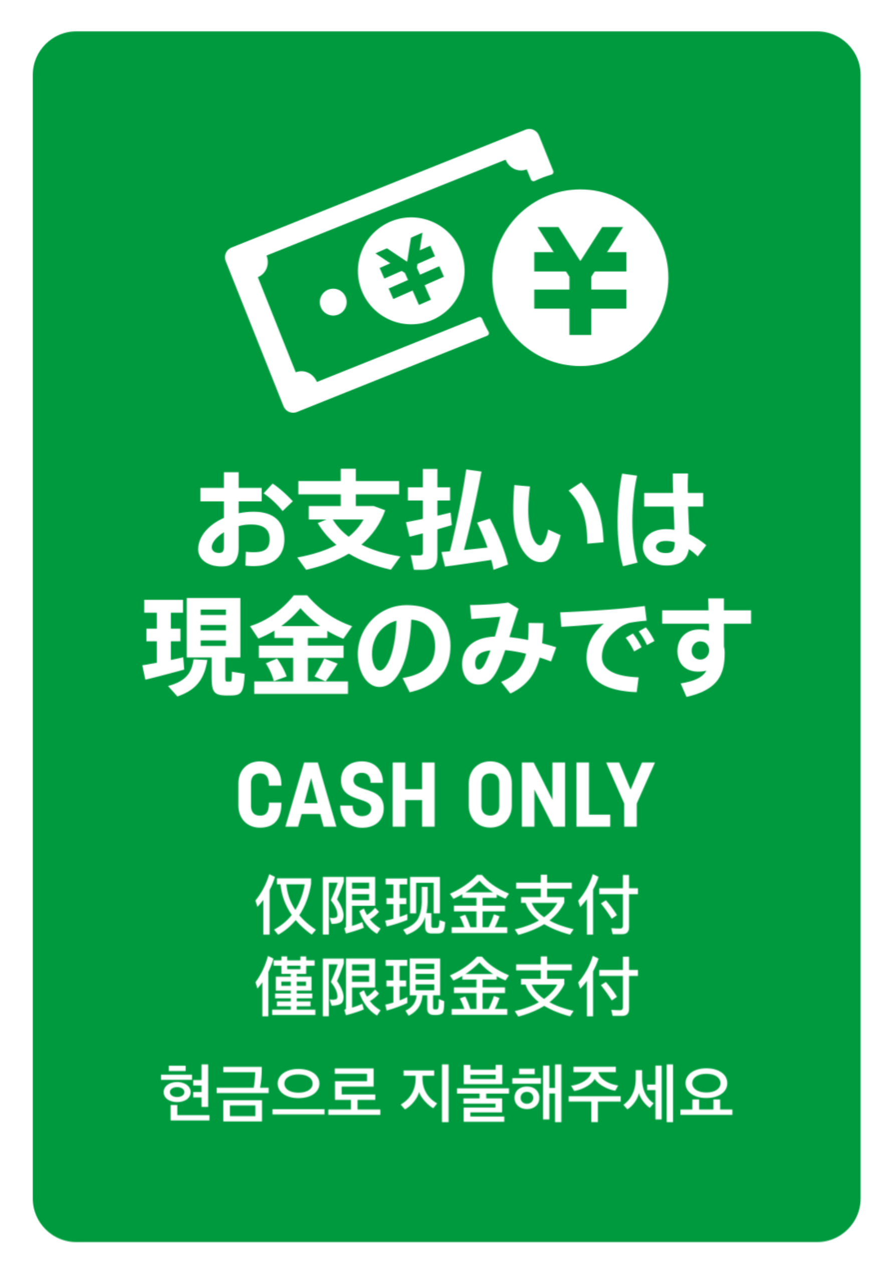 キャッシュレス決済はご利用いただけませんので、現金のご用意をお願いいたします。
